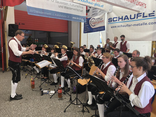 Wie auch die Jahre zuvor starteten wir mit der musikalischen Umrahmung der hl. Messe. Der Festakt und der Frühschoppen, die im Anschluss stattfanden, wurden ebenso von uns gestaltet.