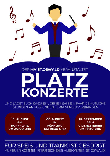 Um den Sommer noch etwas auszukosten und um den Ort musikalisch wieder ein bisschen mehr zu beleben, hat sich der Musikverein St. Oswald dazu entschlossen, öffentliche Proben zu veranstalten und dazu wird nun recht herzlich eingeladen.