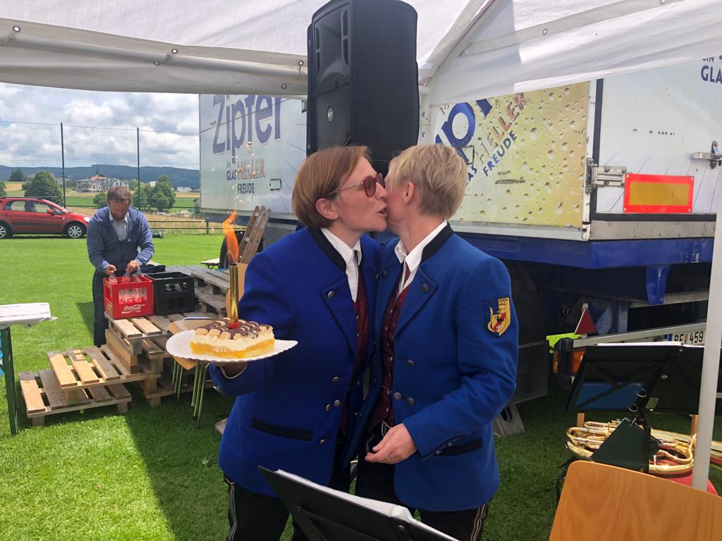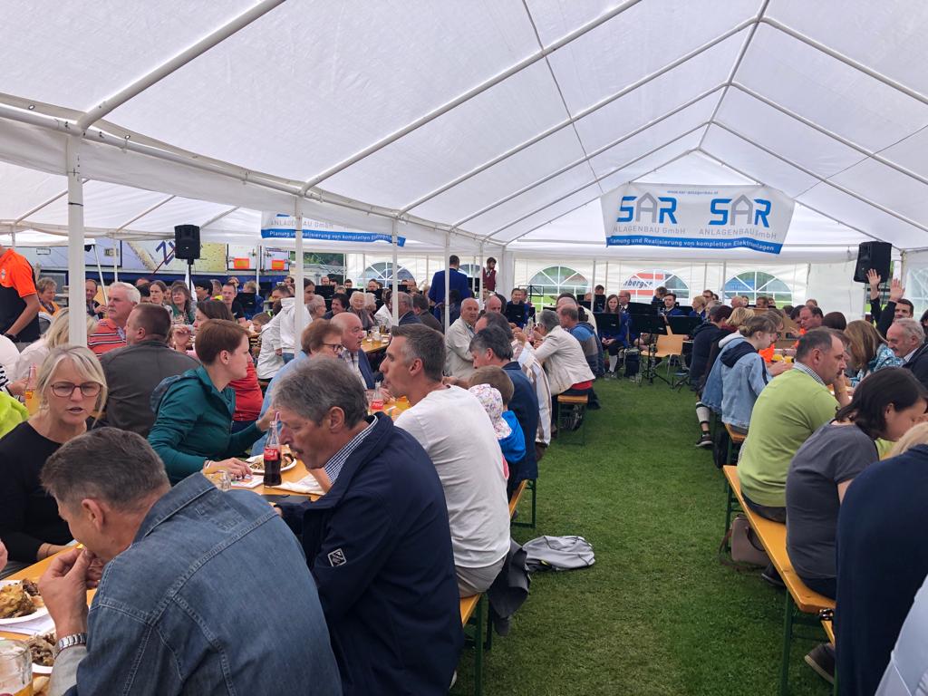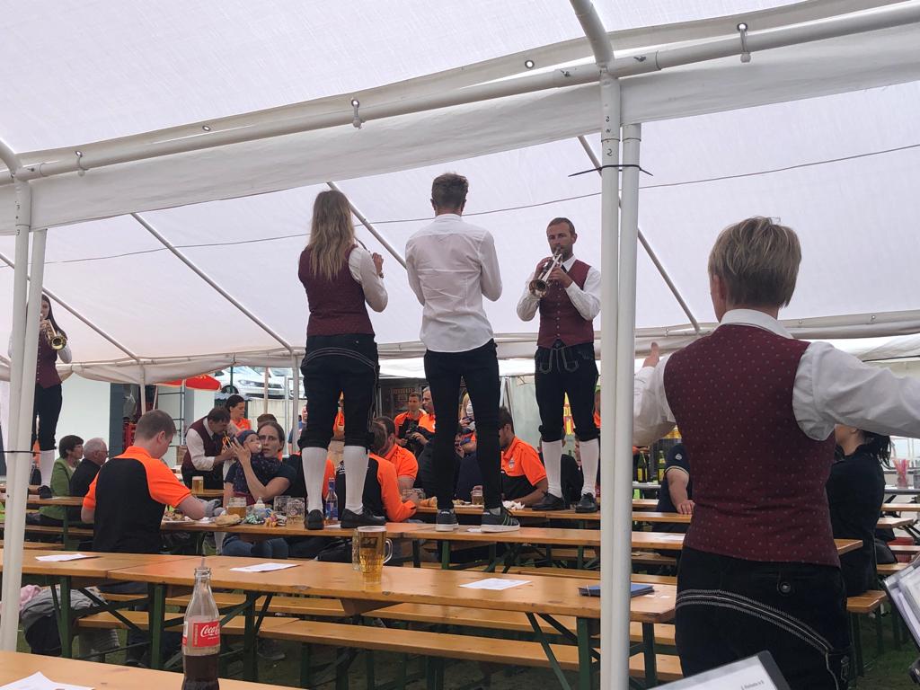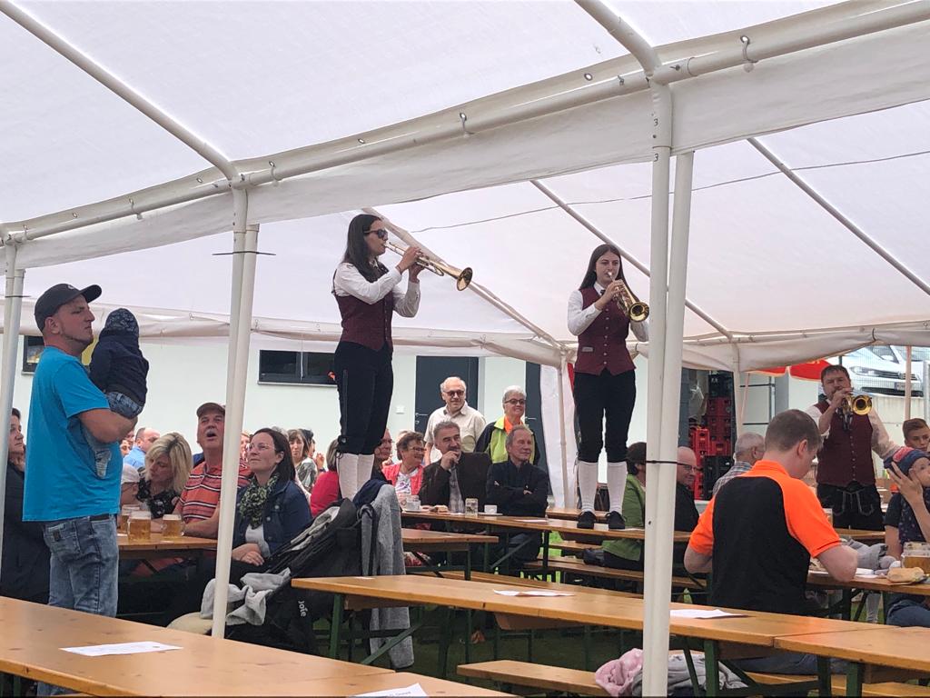 Es gab aber noch einen weiteren Grund zum Feiern: Mit einem kräftig gesungenen "Happy Birthday" gratulierte nicht nur der Musikverein, sondern gleich das gesamte Zelt unserer Kapellmeisterin Daniela Kampleitner zu ihrem Geburtstag.